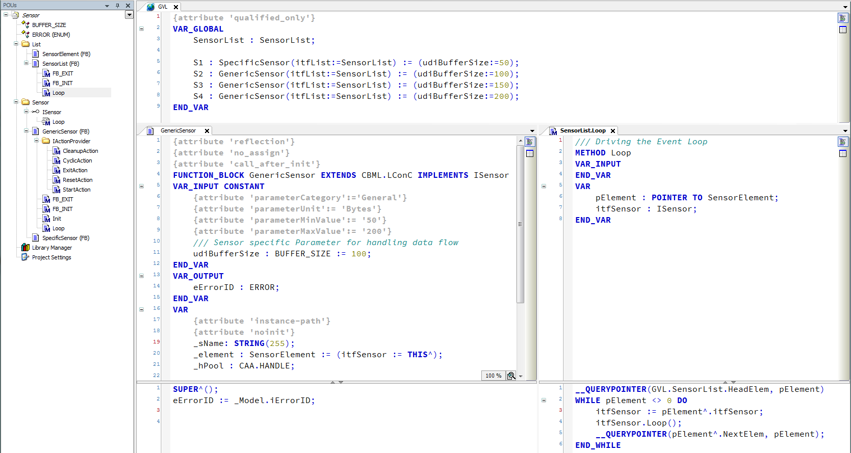 Inside the project we will find two types of function blocks implementing a sensor (GenericSensor and SpecificSensor).